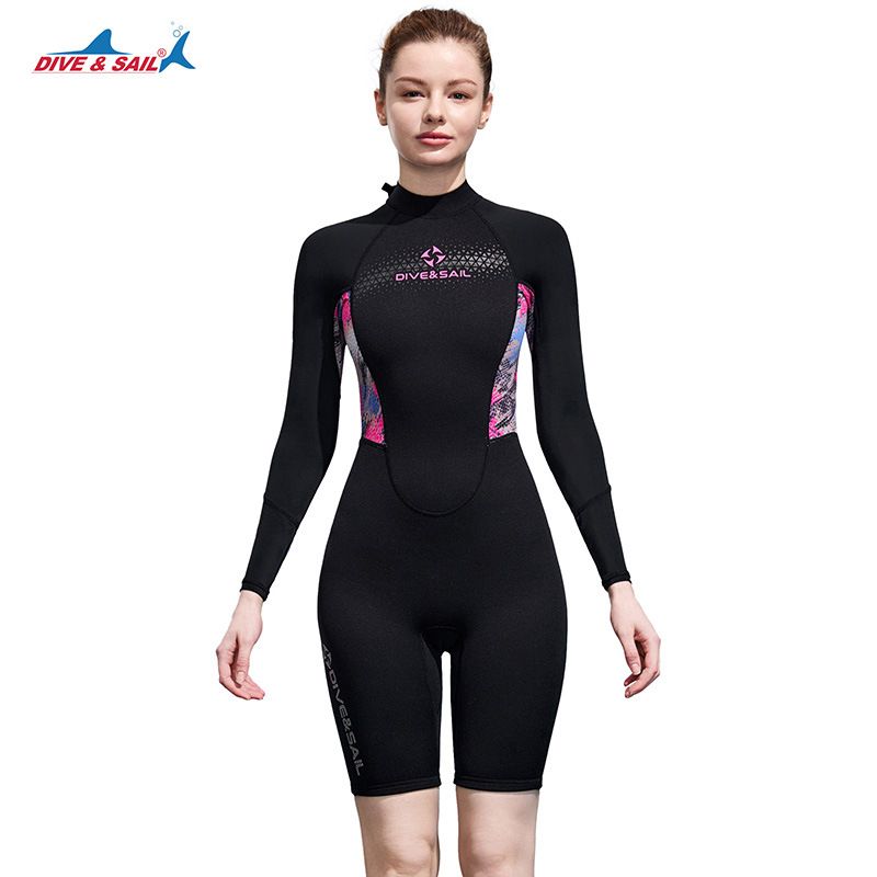Áo Bơi Giữ Nhiệt Nữ Liền Thân Tay Cộc Dive&Sail LS1255 Đen Hồng