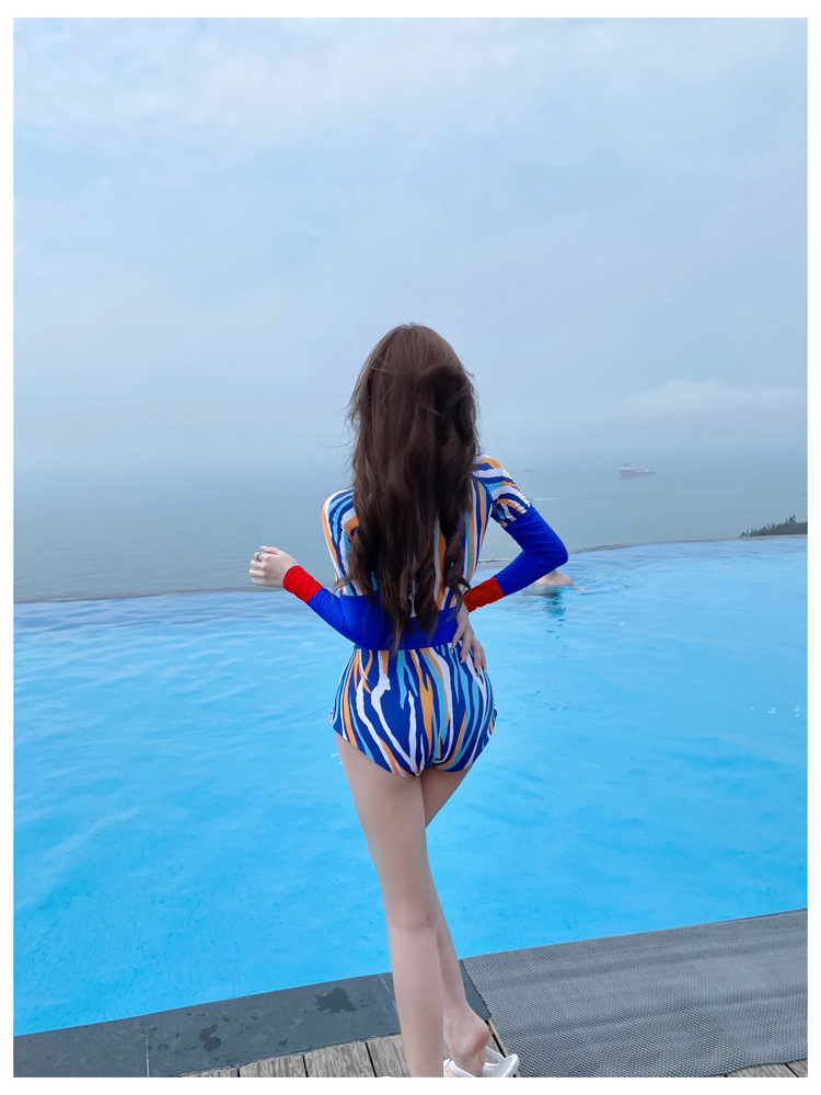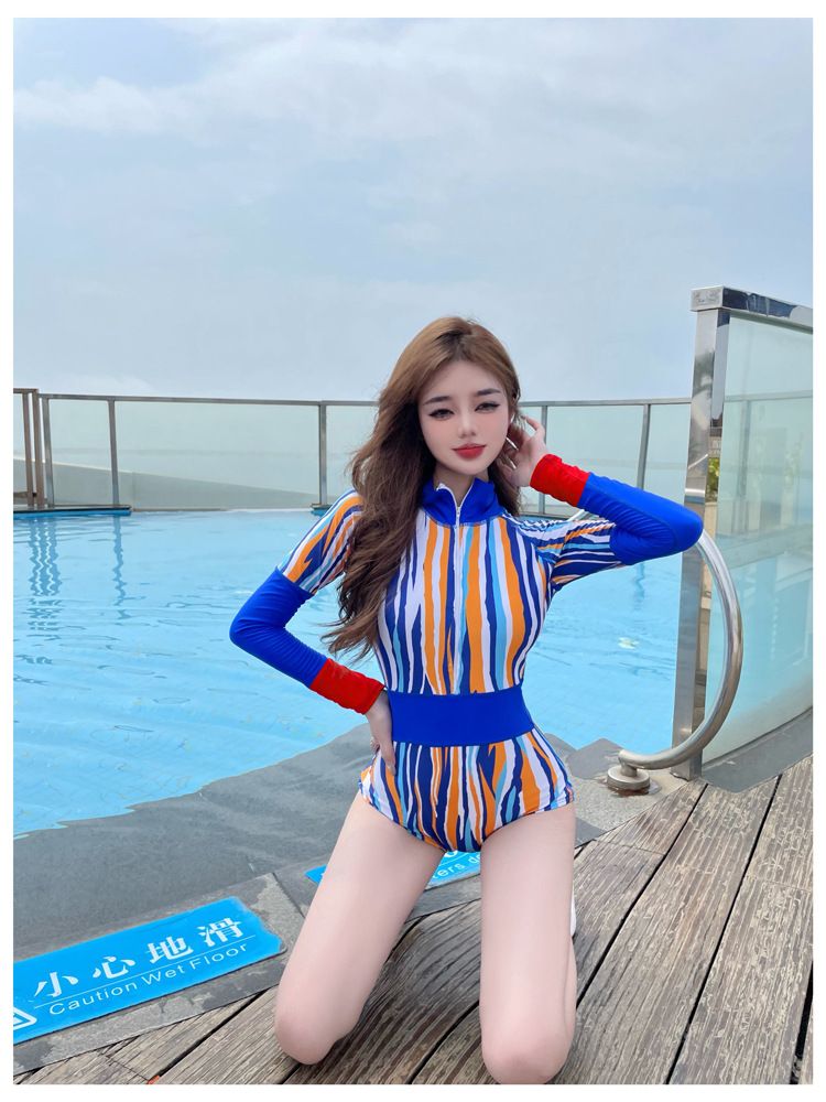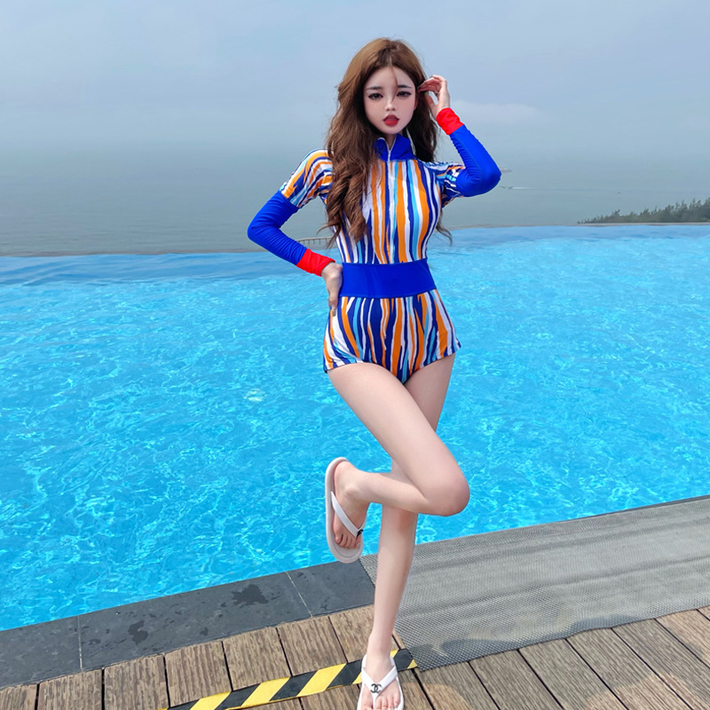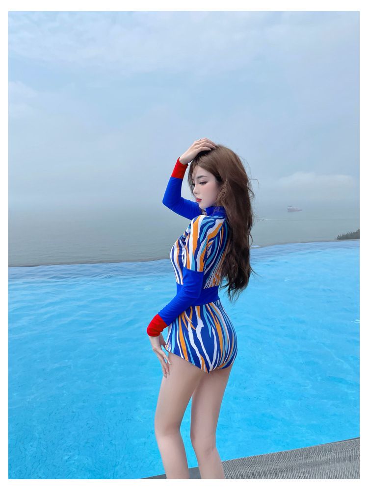 Áo tắm biển dài tay nữ kín đáo dạng liền thiết kế khoẻ khoắn phù hợp các bạn trẻ năng động vừa có thể đi dạo biển, tắm biển