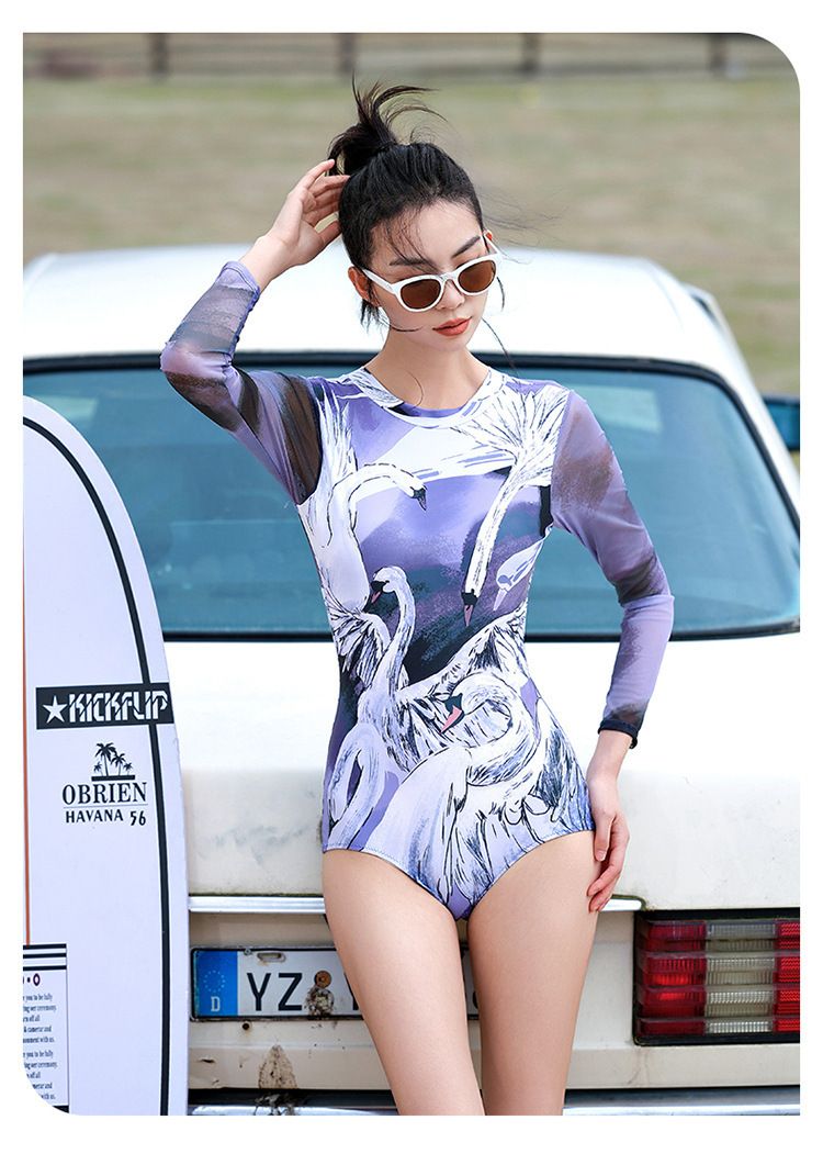 Áo Tắm Biển Dài Tay Nữ Liền Thân SM2527 Hạc Tím
