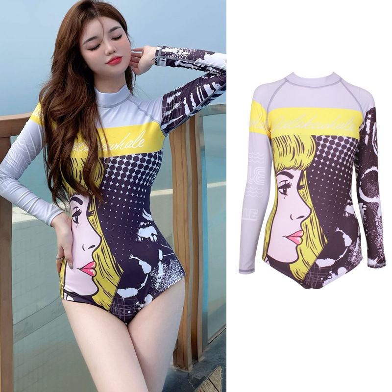 Đồ Bơi Liền Thân Tay Dài Nữ ILW Vàng Xám Hoạ Tiết Cô Gái