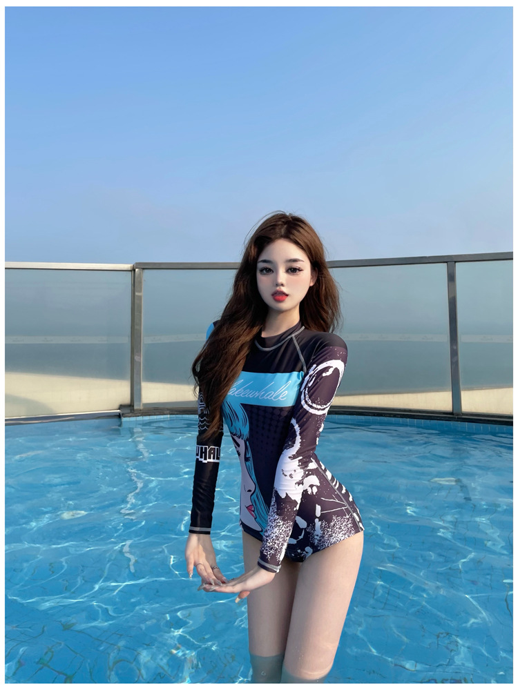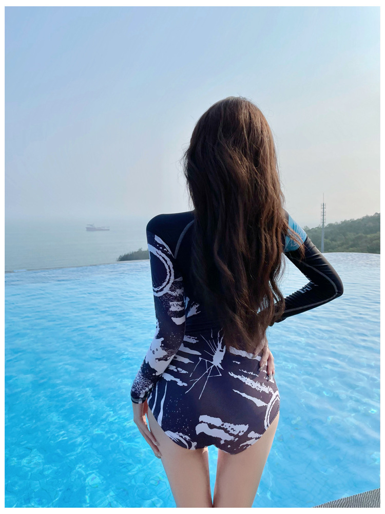 Áo tắm biển dài tay nữ kín đáo dạng liền thiết kế khoẻ khoắn phù hợp các bạn trẻ năng động vừa có thể đi dạo biển, tắm biển