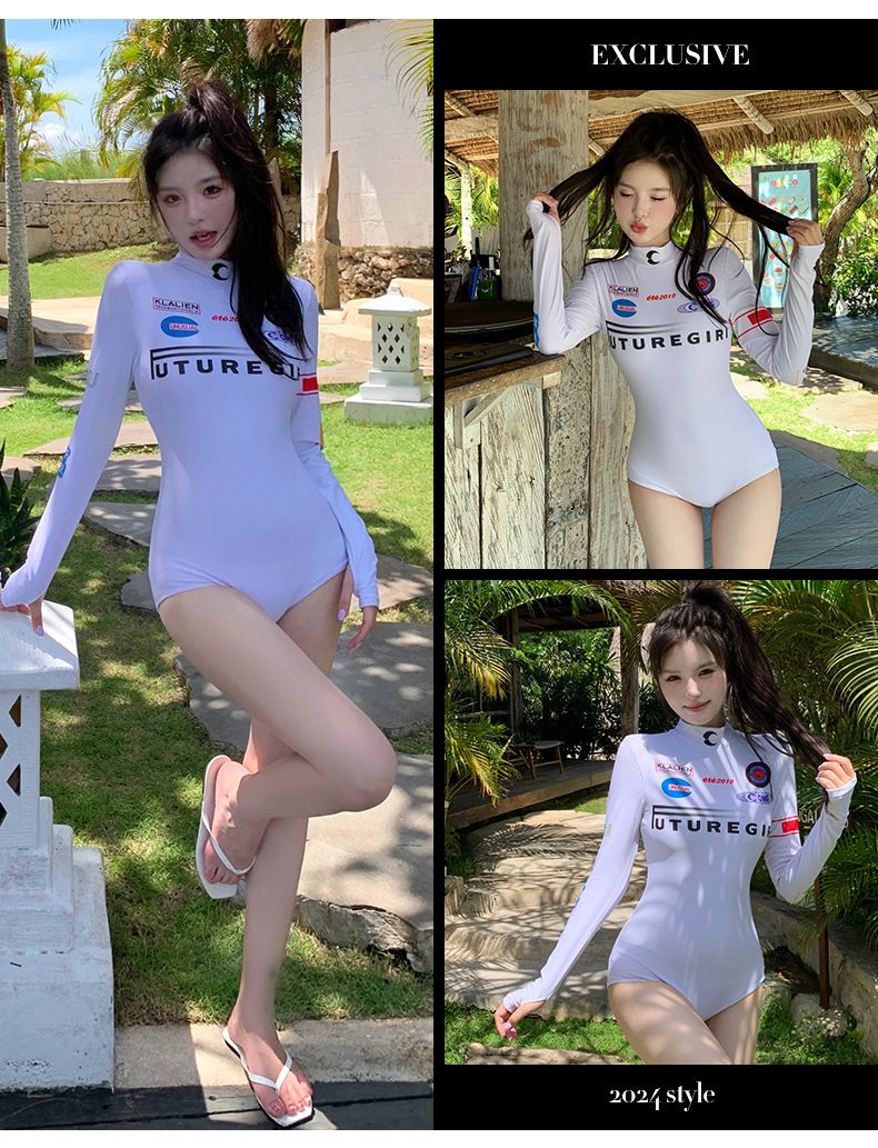 Bộ Bơi Nữ Dài Tay Đa Năng Liền Thân Quần Chéo SM 2327 Trắng