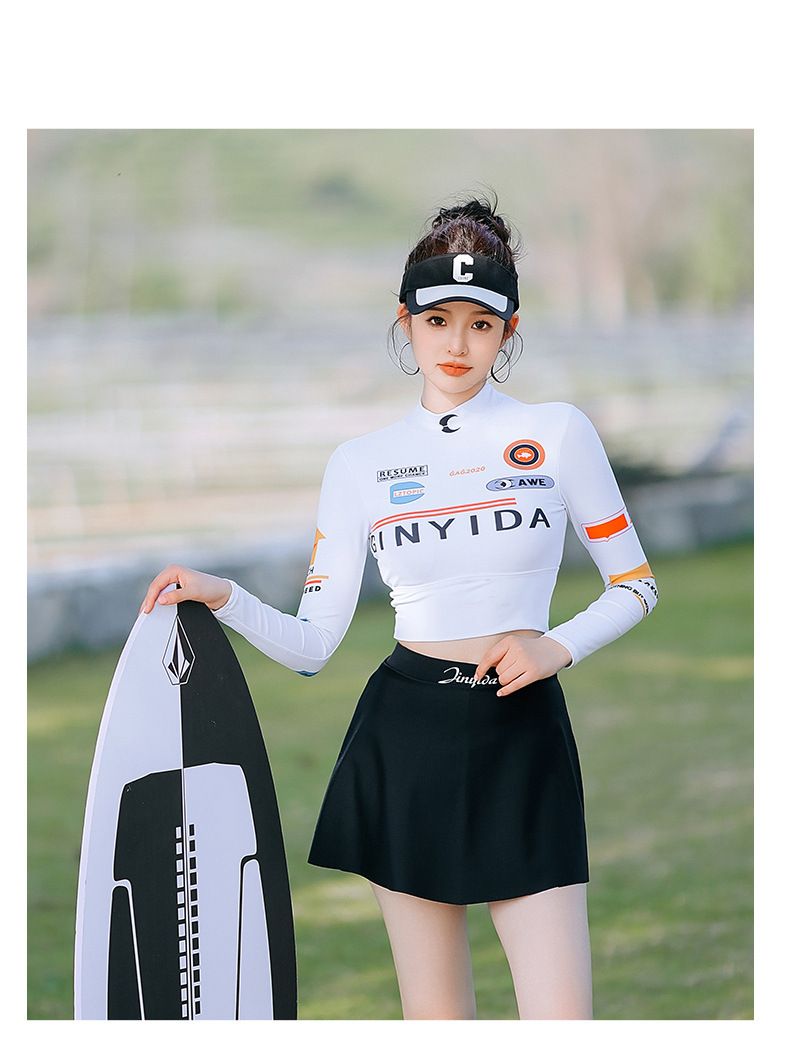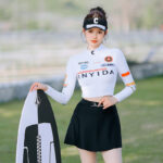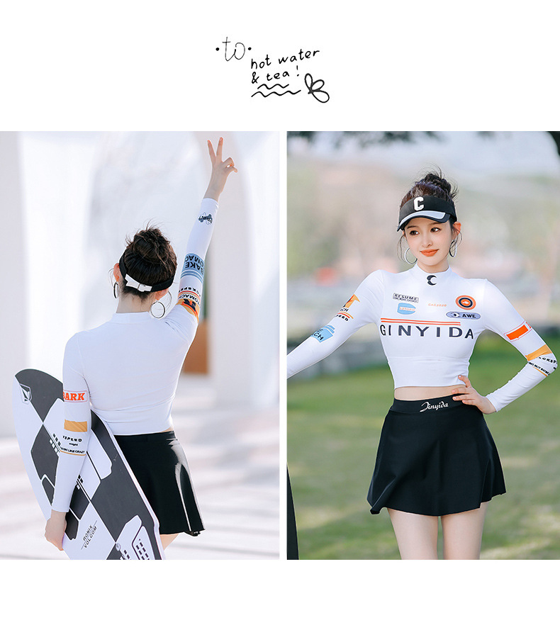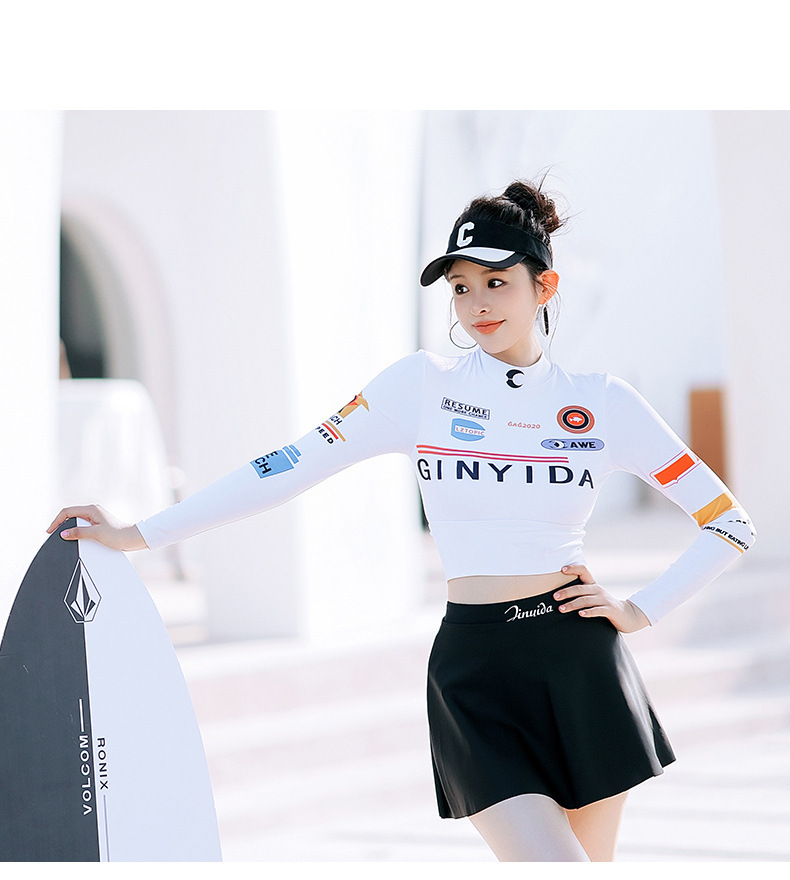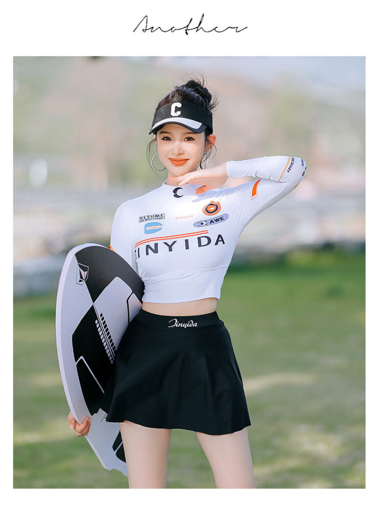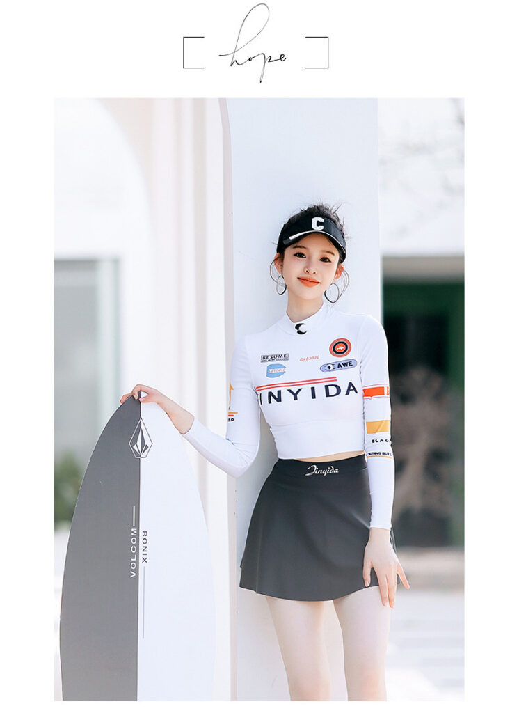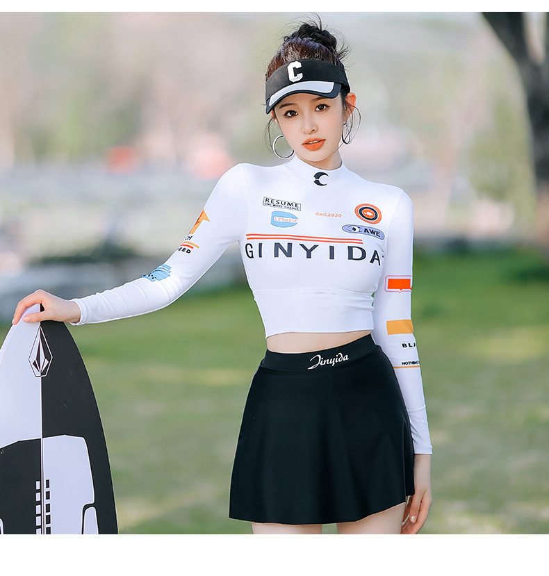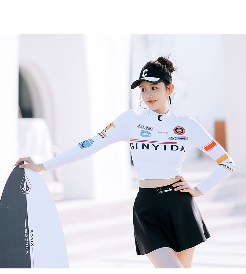 Bộ Bơi Nữ Dài Tay Đa Năng Quần Đùi Giả Chân Váy SM 2301 Trắng