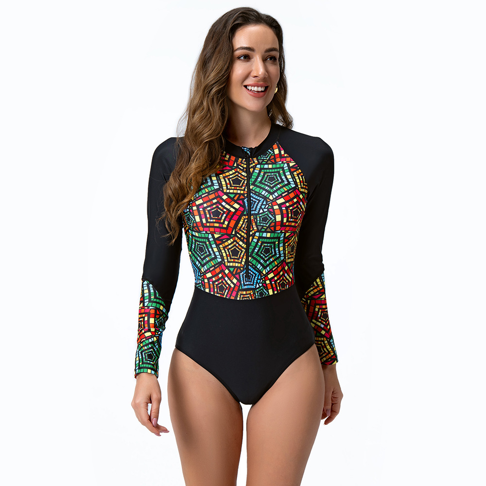Áo tắm biển dài tay nữ kín đáo dạng liền thiết kế khoẻ khoắn phù hợp các bạn trẻ năng động vừa có thể đi dạo biển, tắm biển