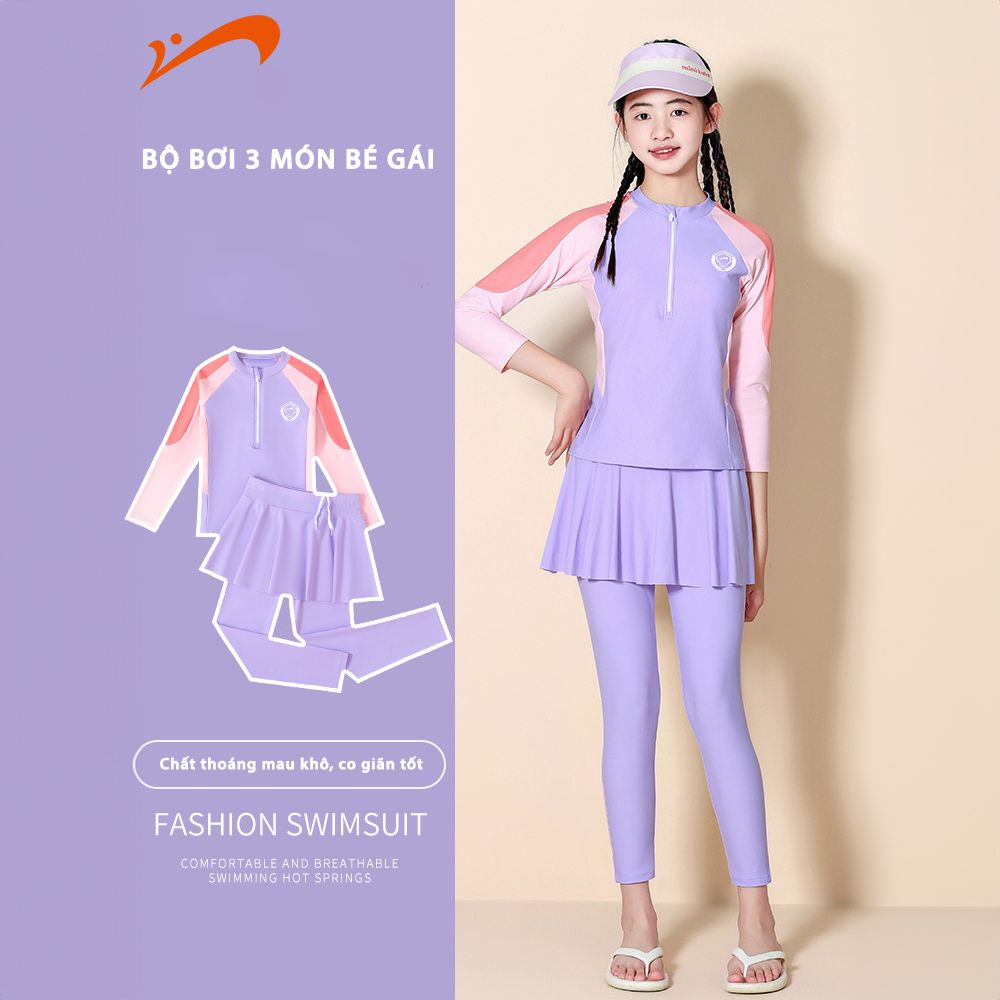 Đồ Bơi Cho Bé Gái Dạng Rời Quần Dài Quần Váy Dài Tay Y136