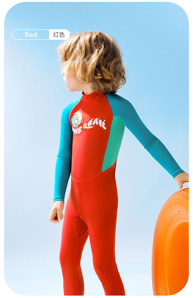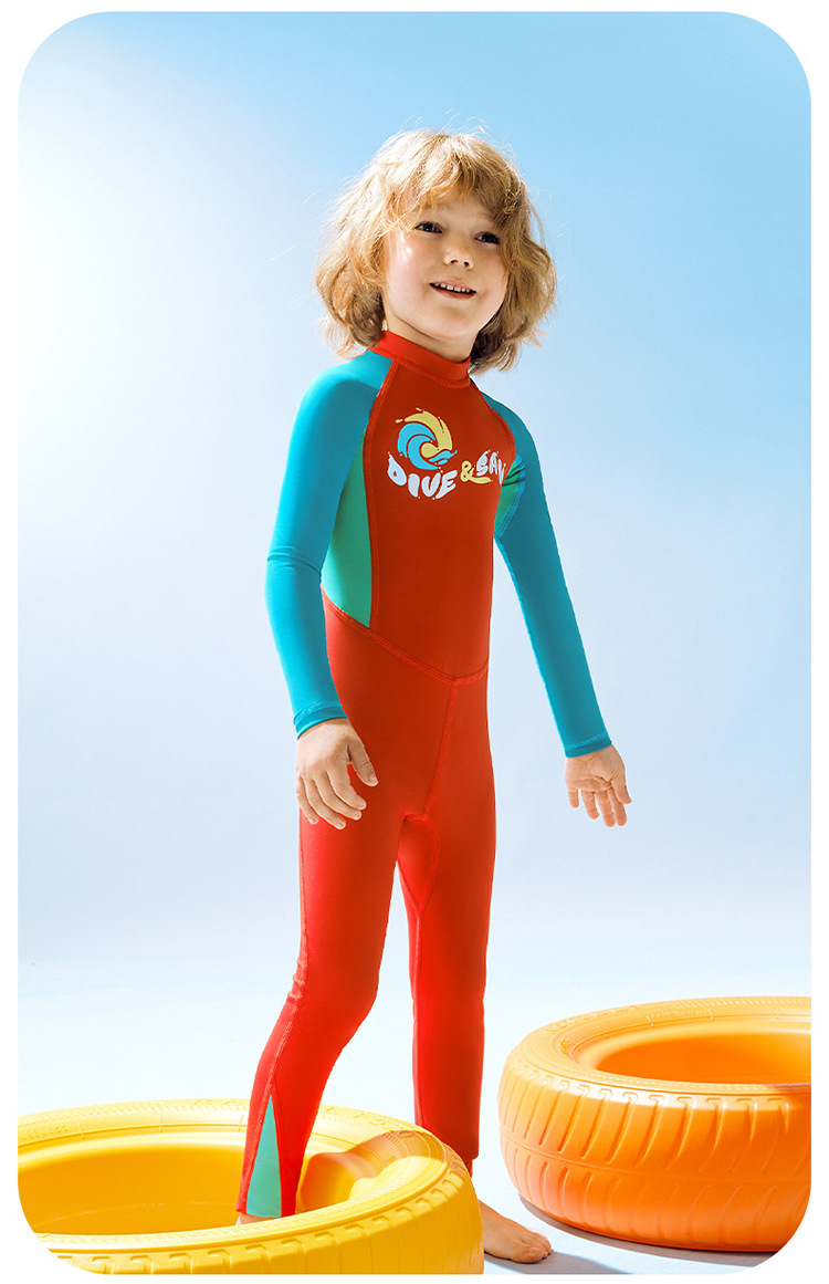 Đồ Bơi Dive & Sail Cho Bé Trai Liền Thân Dài Tay DS190 Đỏ Tay Xanh