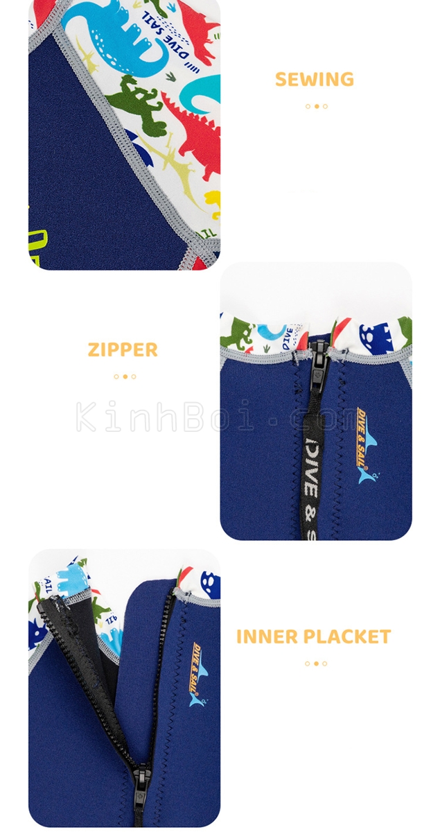 Đồ bơi giữ nhiệt cho bé trai chính hãng DS WS516 liền thân dài tay có khoá kéo sau
