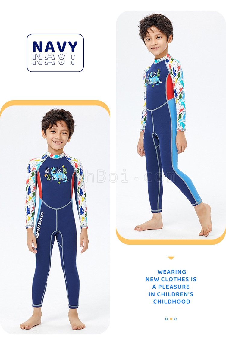 Đồ Bơi Giữ Nhiệt 1 Phần Cho Bé Trai Liền Thân Dài Tay Dày 2.0mm