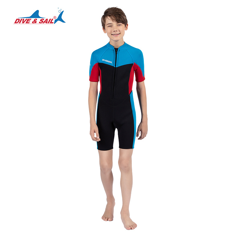Đồ Bơi Giữ Nhiệt Bé Trai Liền Thân Tay Cộc 2.5mm Wetsuit WS604 Dive&Sail – Đen Đỏ