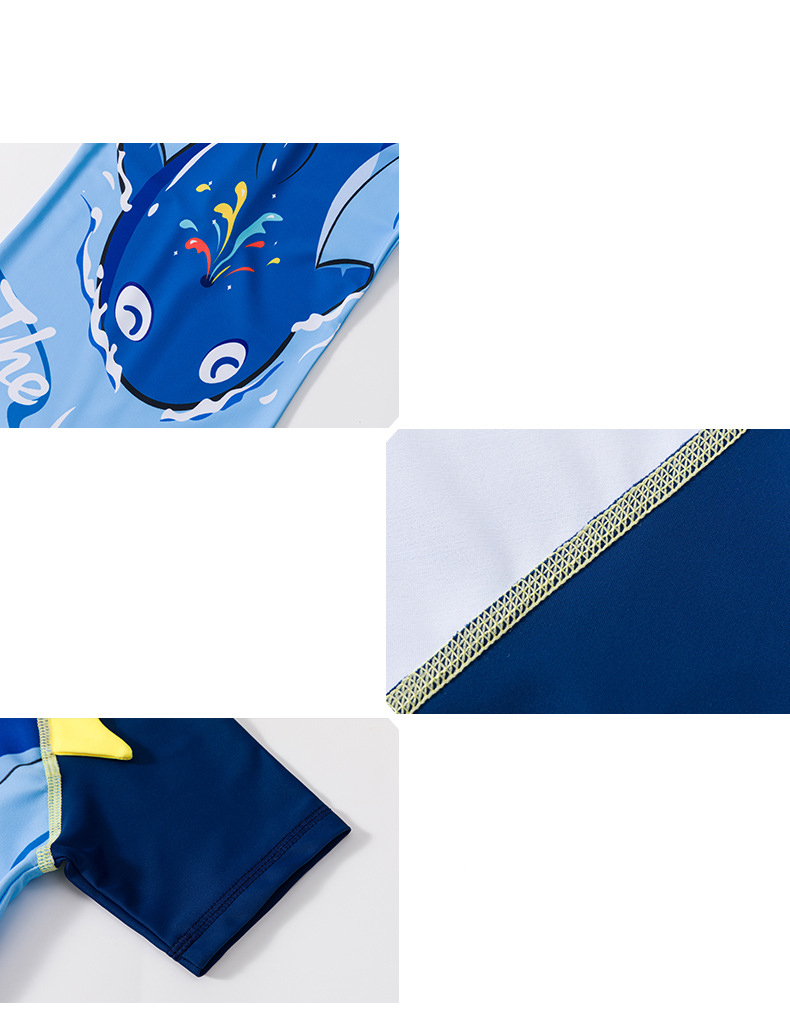 Đồ Bơi Liền Cho Bé Trai Size Đại Cộc Tay Khủng Long Mập – Xanh Đậm