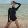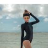 Đồ Bơi Nữ Jumpsuit Tay Dài Cao Cổ Liền Thân Khóa Kéo Sau 2749 Đen