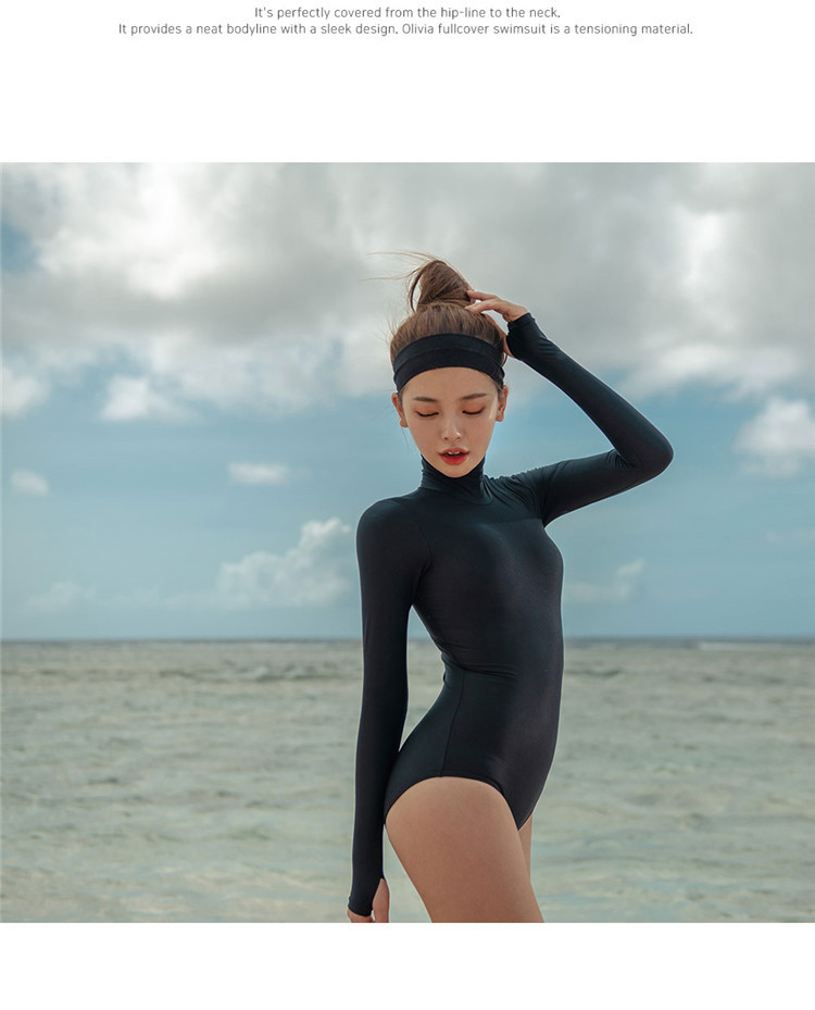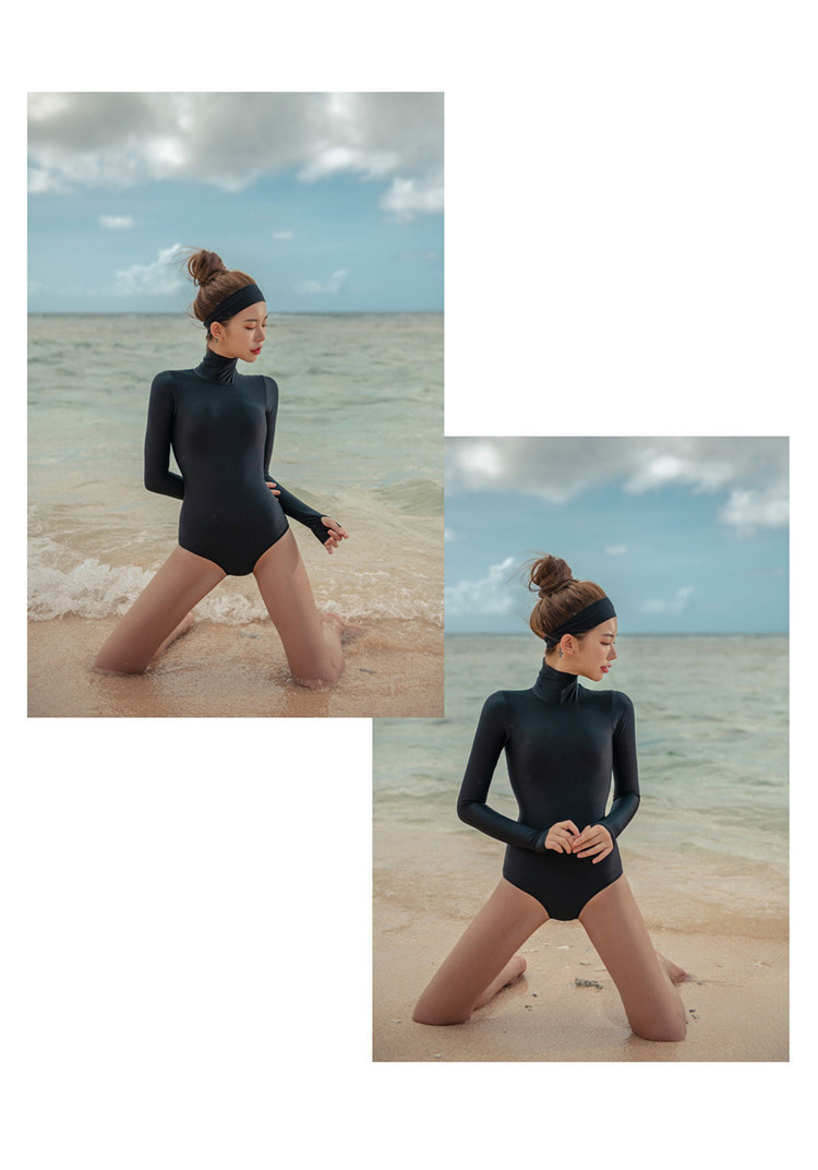 Đồ Bơi Tay Dài Nữ Cao Cổ Liền Thân Khóa Kéo Sau 2749 Đen