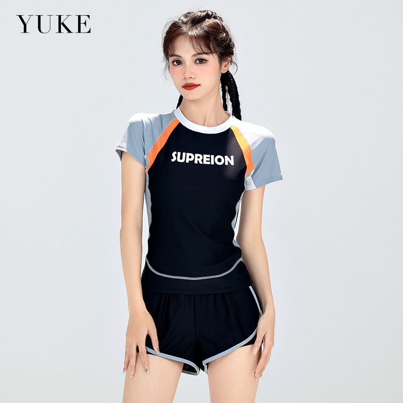Đồ Bơi Nữ Kín Đáo YUKE Set Áo Bơi Nữ Cộc Tay Quần Đùi Dạng Rời SUPREION Đen