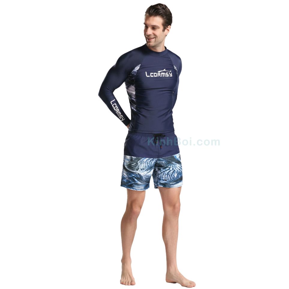 Set 2 món đồ bơi nam áo bơi dài kèm quần bơi dài tới gối