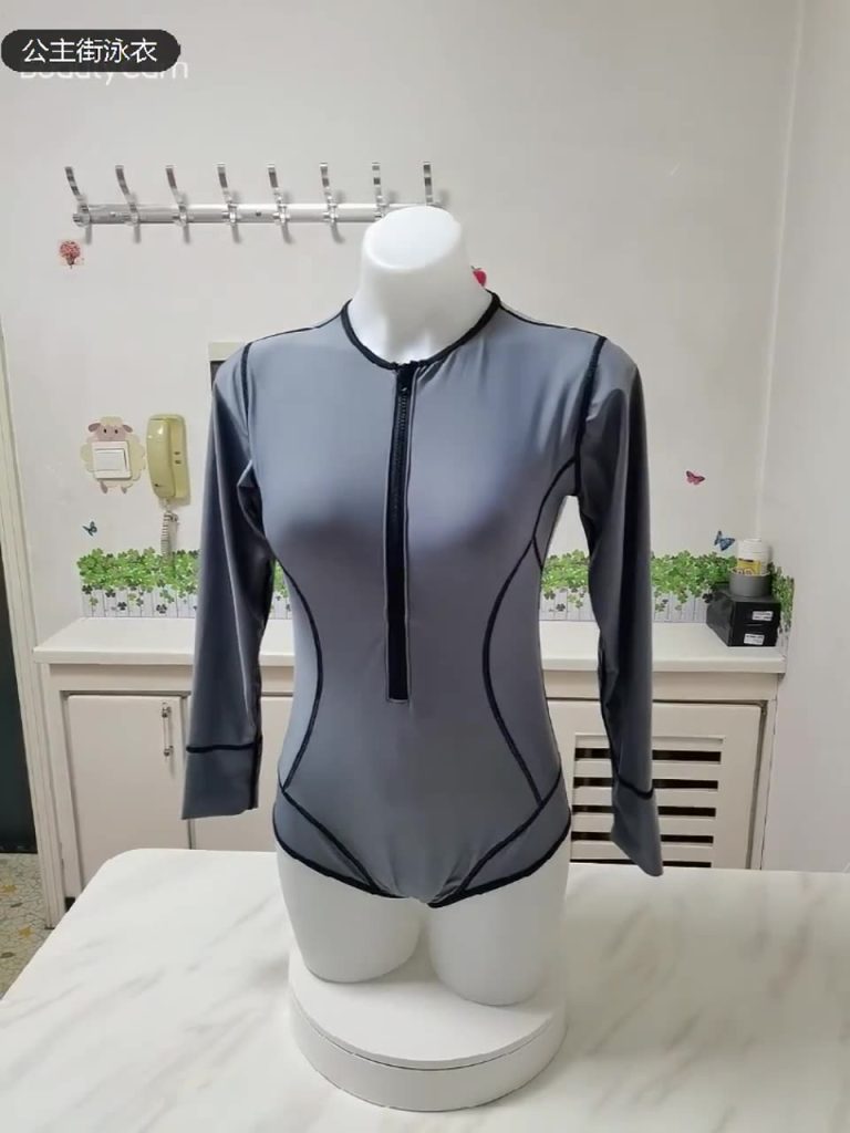 Đồ Bơi Tay Dài Nữ Liền Thân Khóa Kéo Trước 9016 Ghi