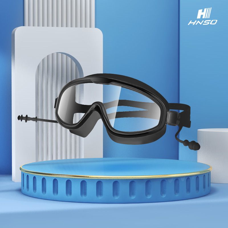 Kính Bơi Người Lớn Mắt To Panorama Góc Nhìn Rộng Mắt Trắng Trong Suốt HNSD 8187 – Gọng Đen